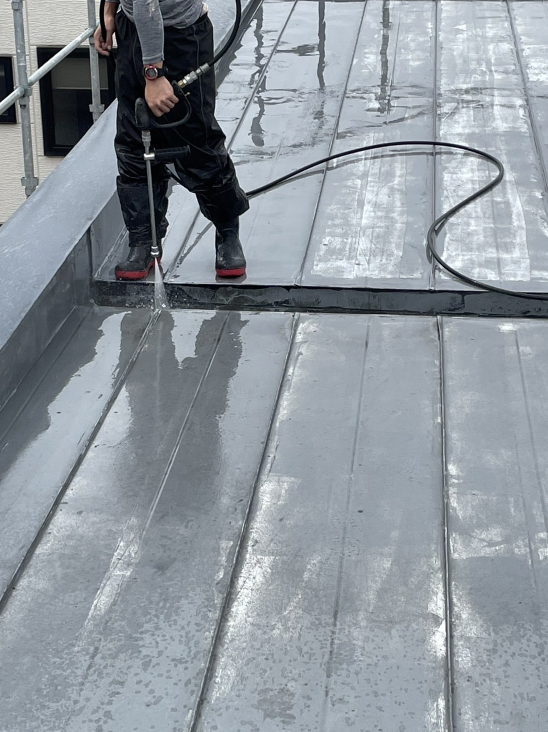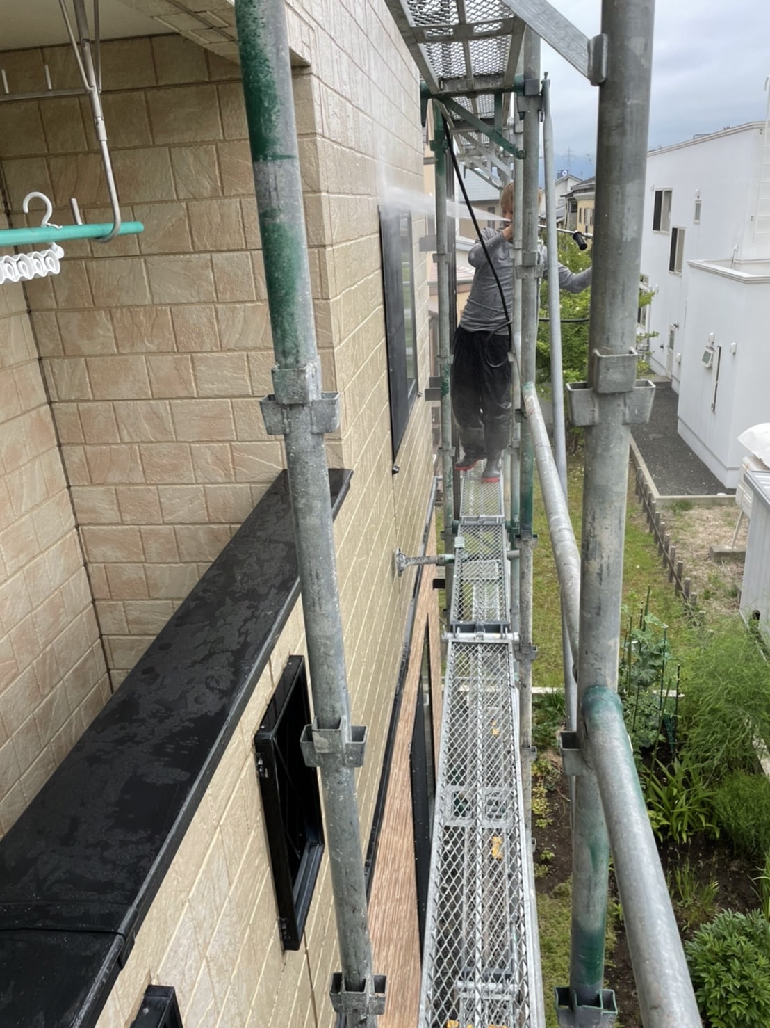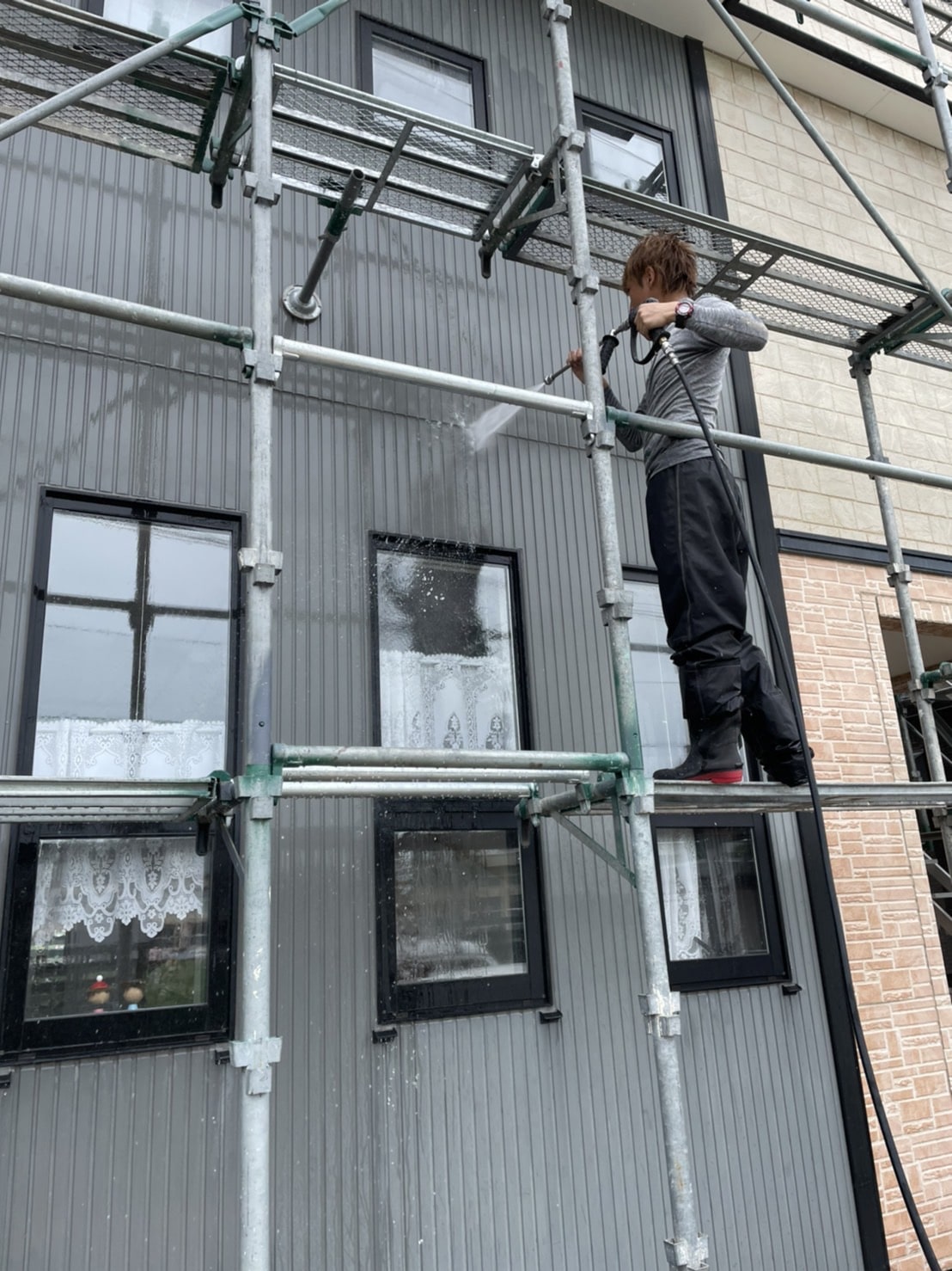いざ、高圧洗浄してみると現地調査時にはわからなかった外壁材の表面が強い水圧によってドンドン剥がれてしまう箇所が・・・