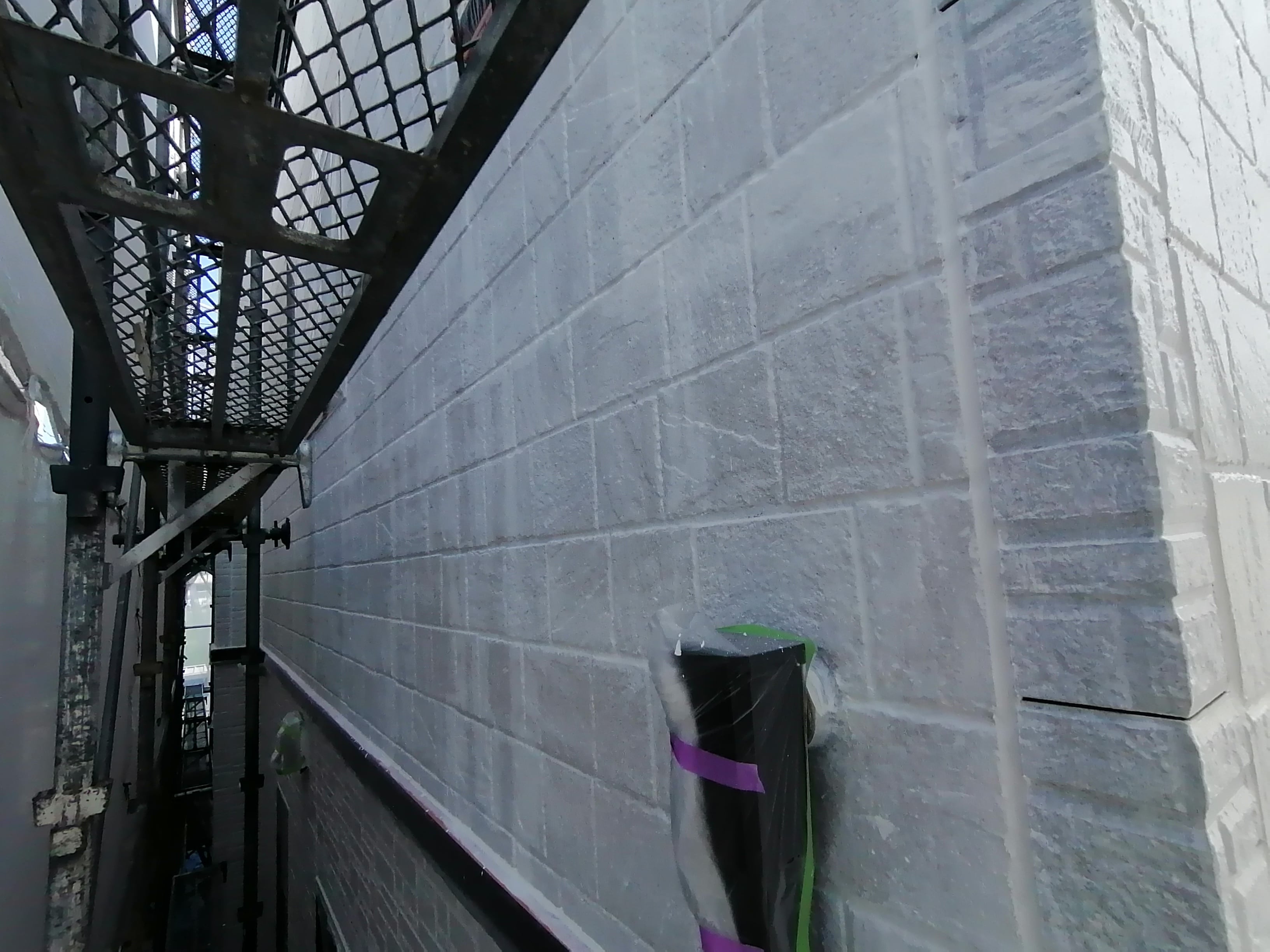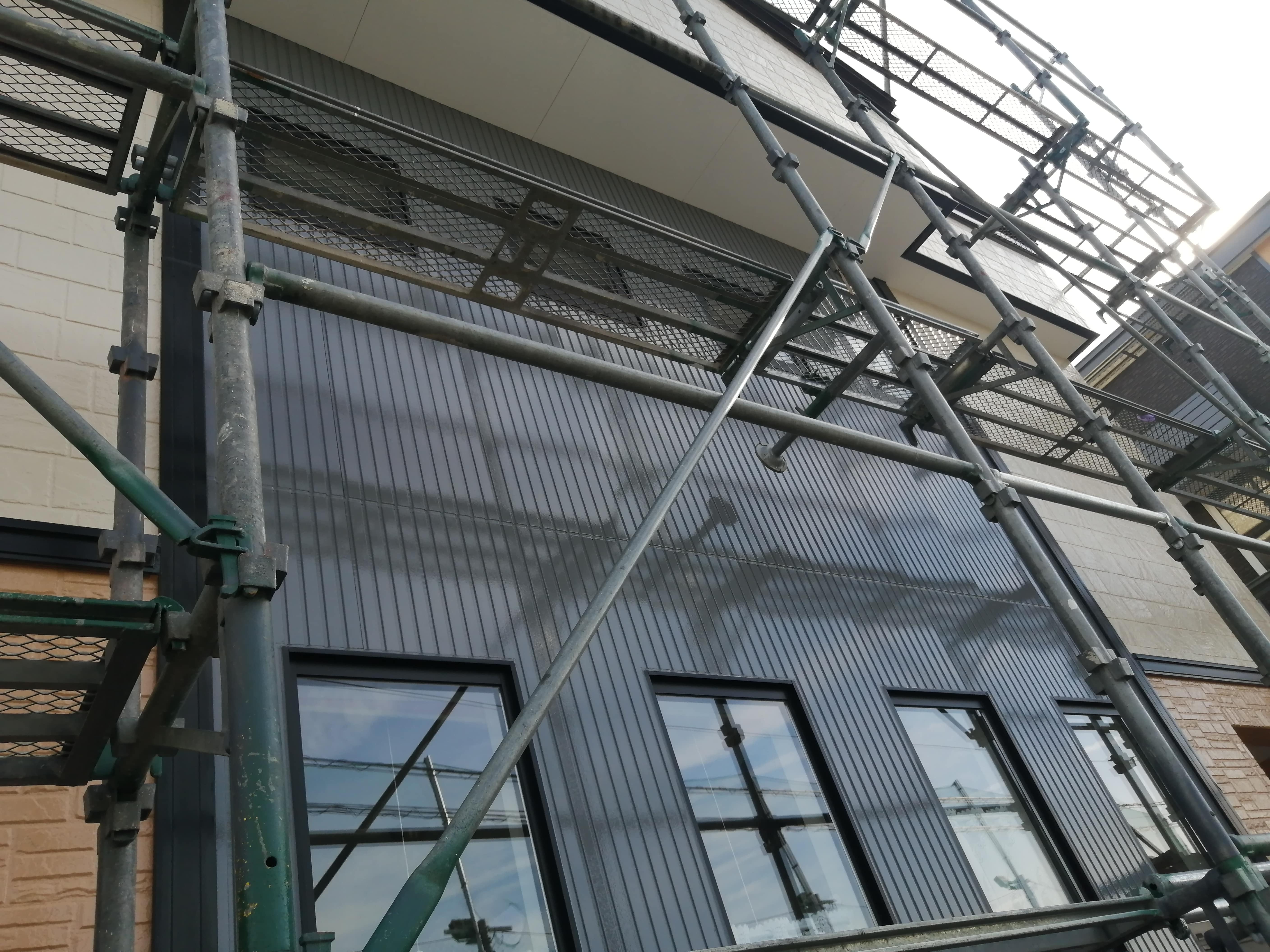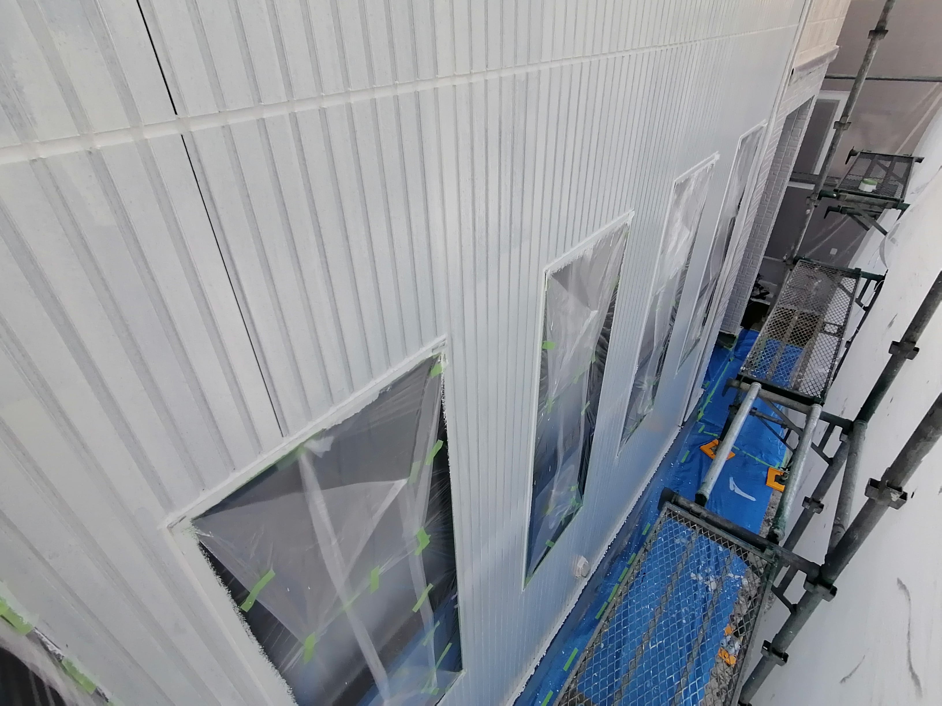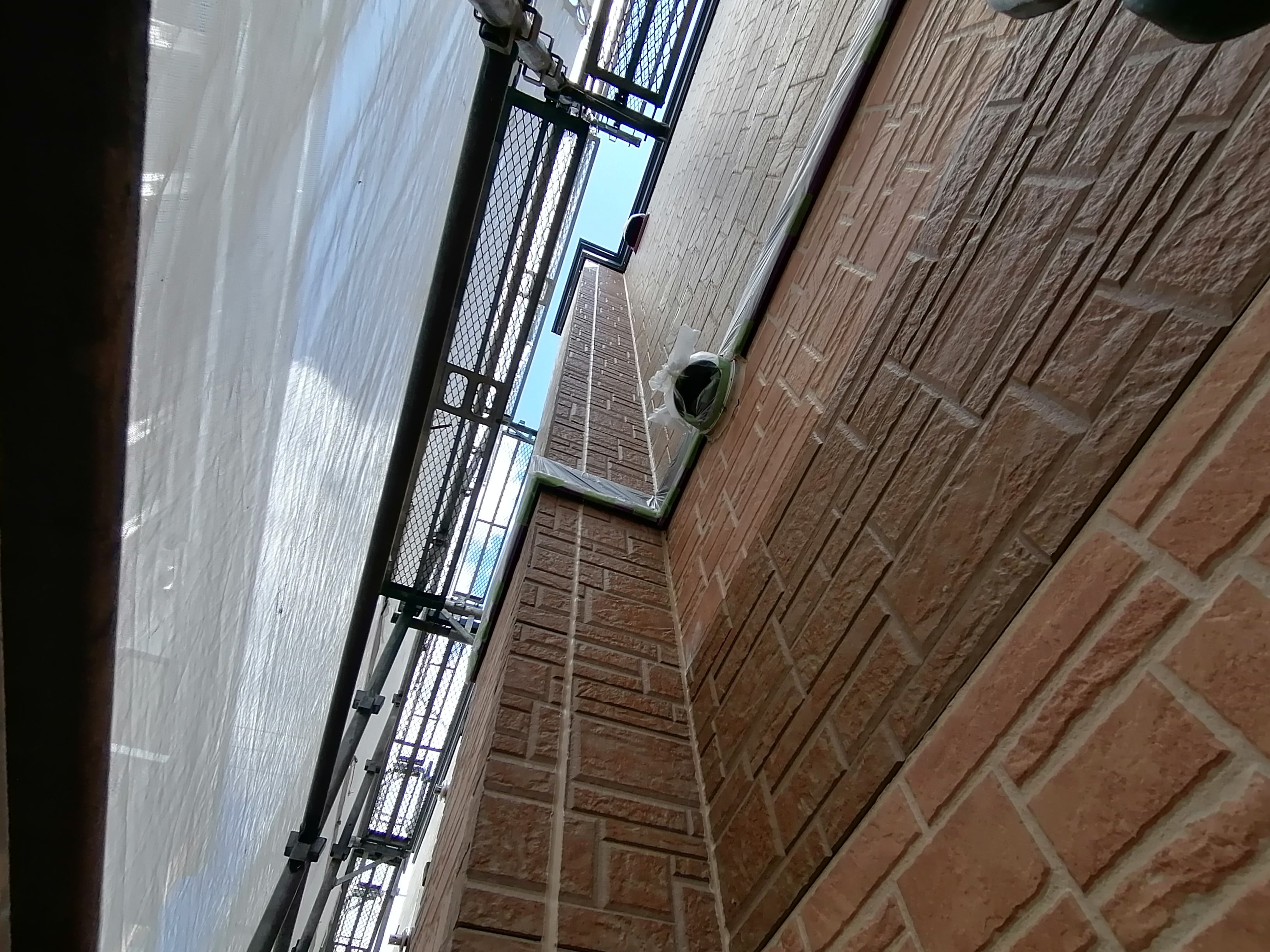 下塗りはお住まいの4面の内3面の状態が良いので1工程(浸透型高密着のシーラー)。他の1面部分の劣化が激しく、パテ補修も多かったのでプラス1工程(微弾性フィラー)行いました。