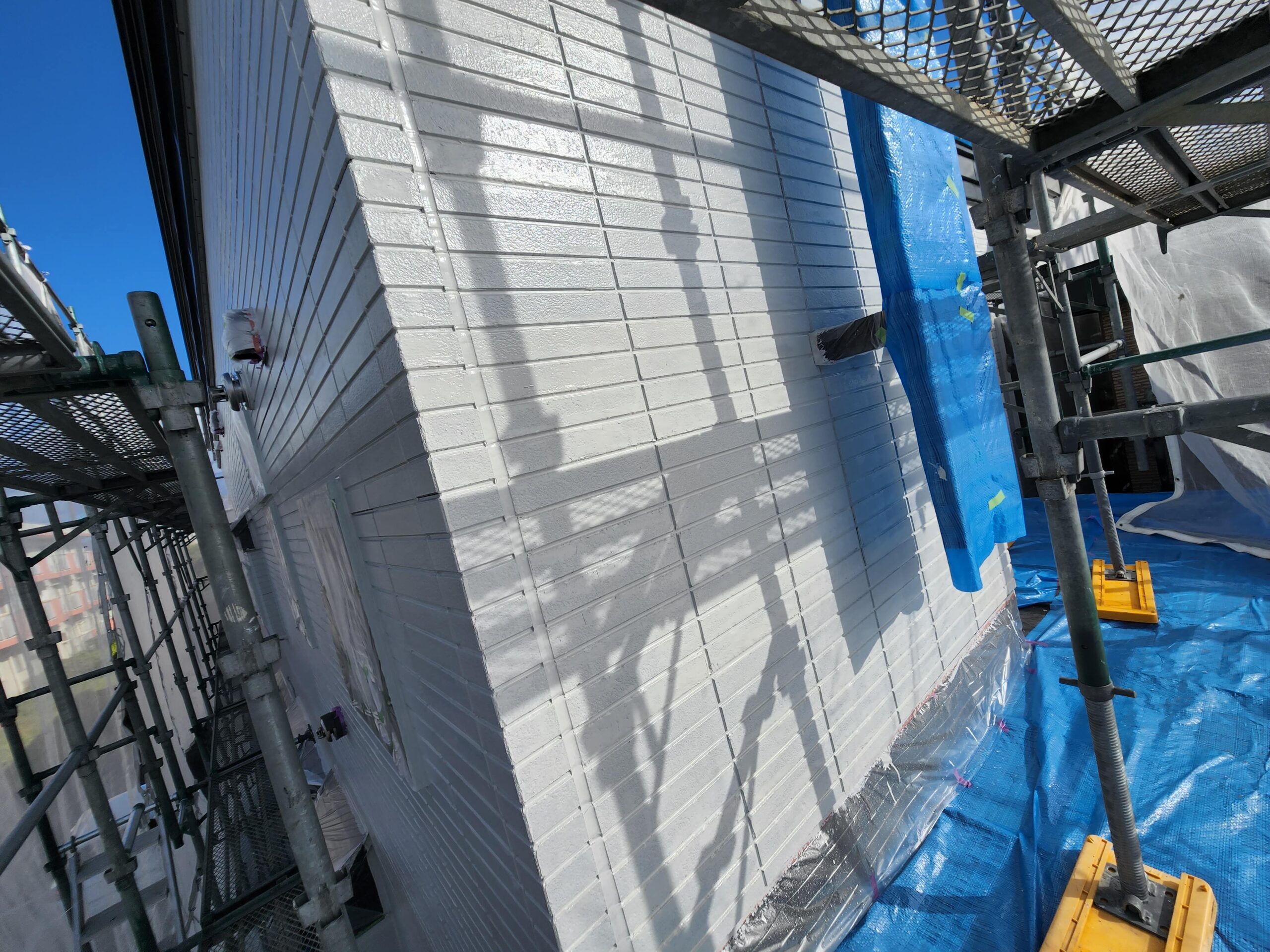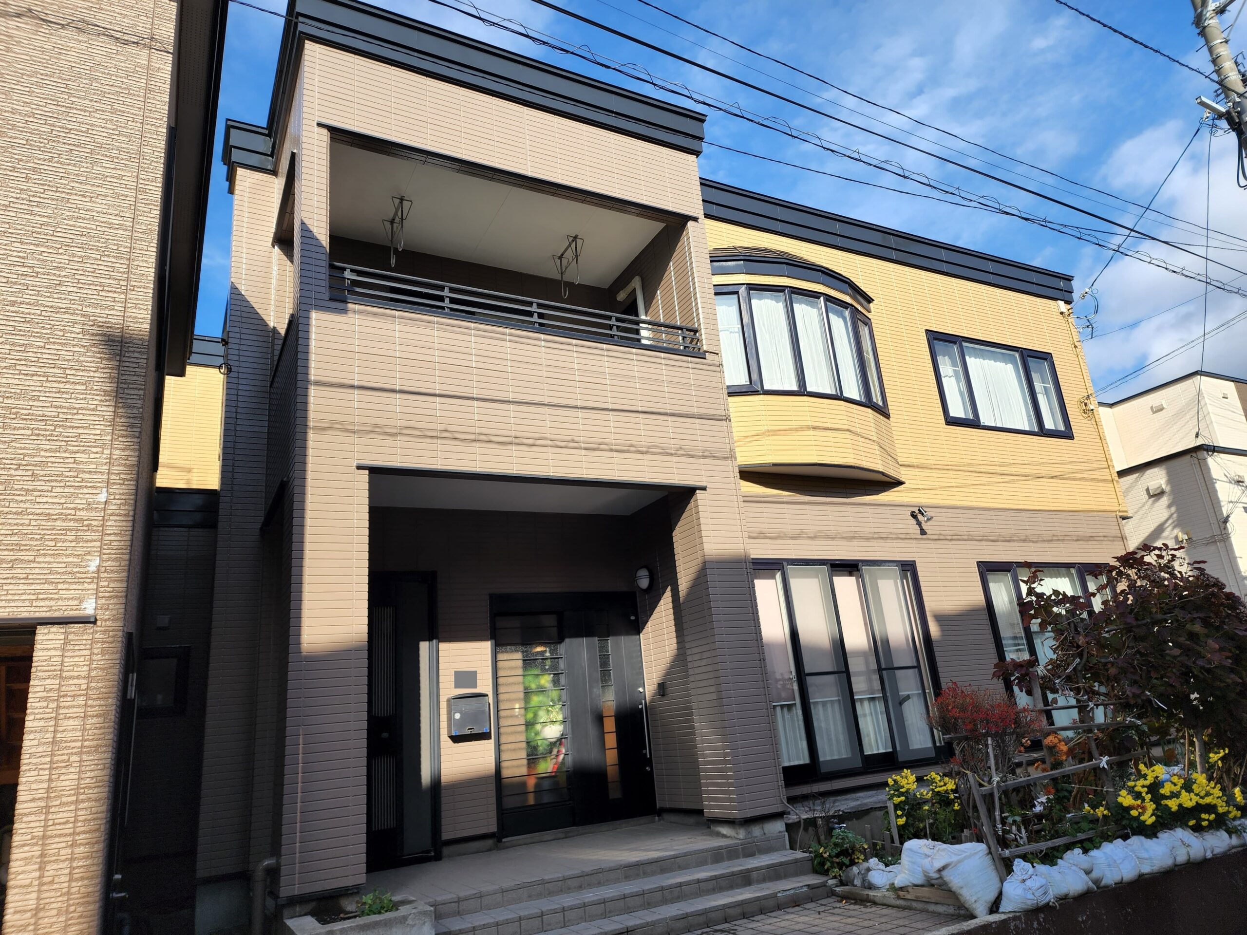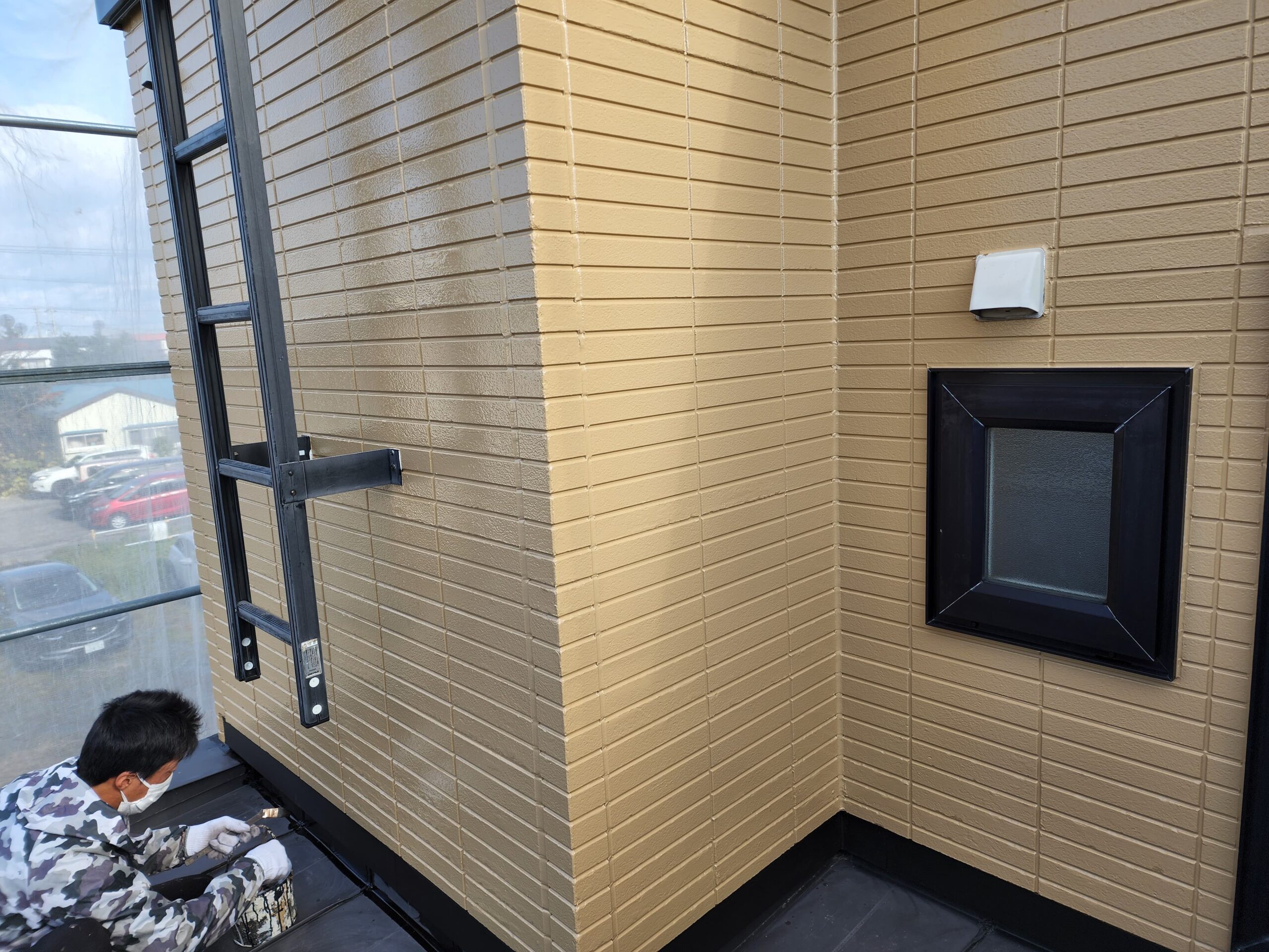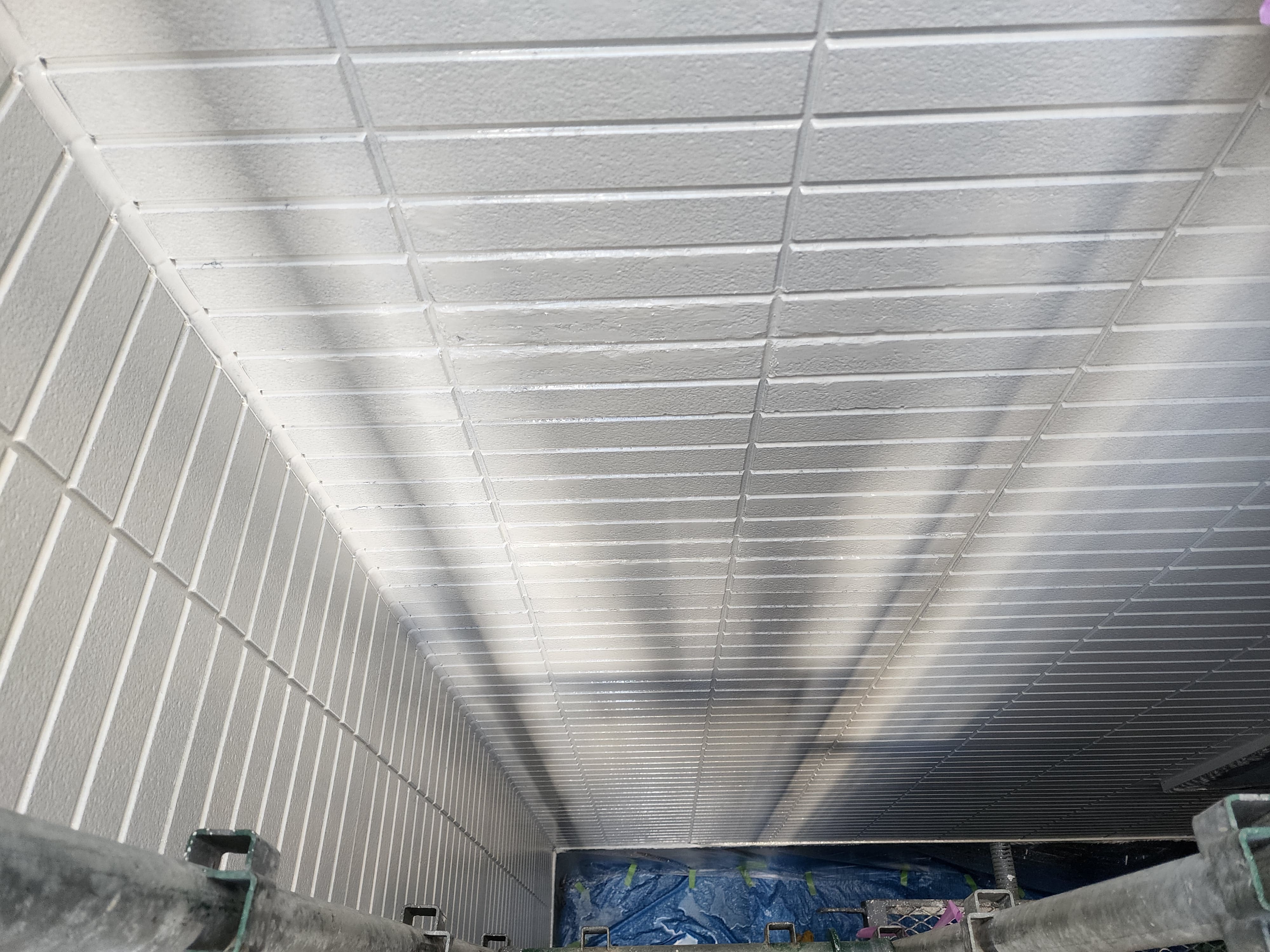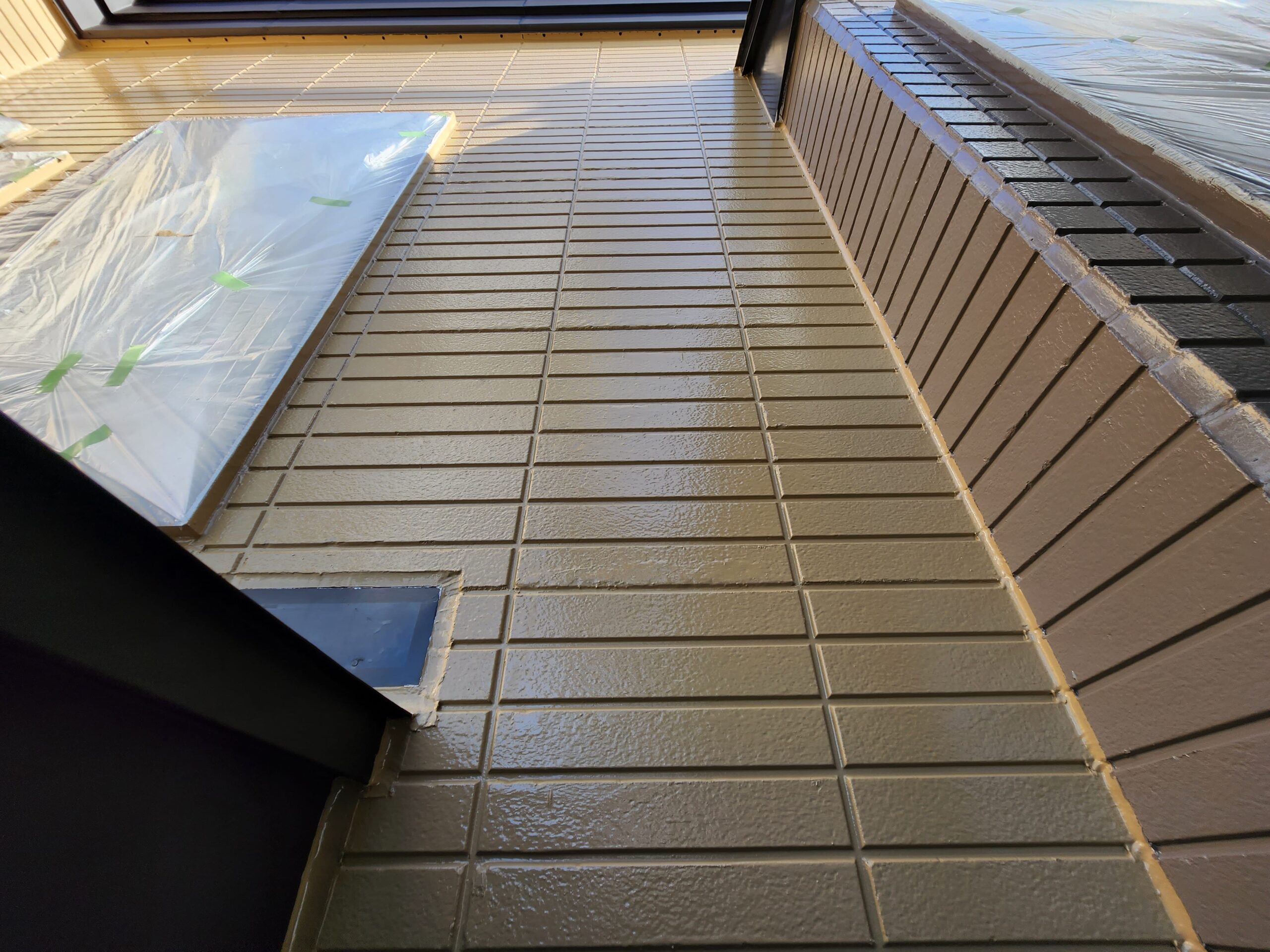 また下塗り材は通常1工程ですがこちらでは浸透型高密着のシーラー塗装をしてから、膜厚をとって軽微な外壁の劣化部分を補修してくれる役割をもつ微弾性フィラーを塗装と2工程を下塗りで施工しました。