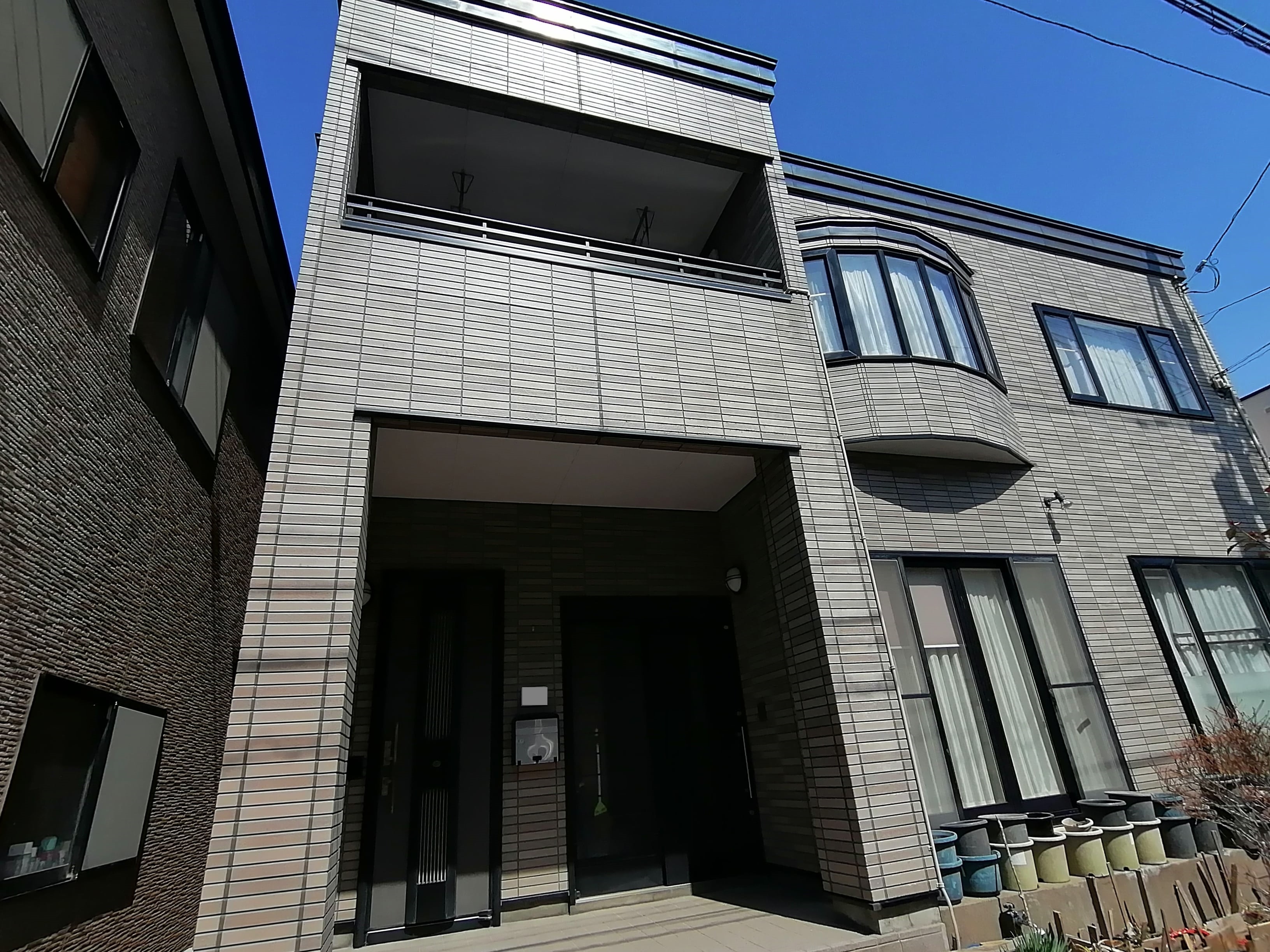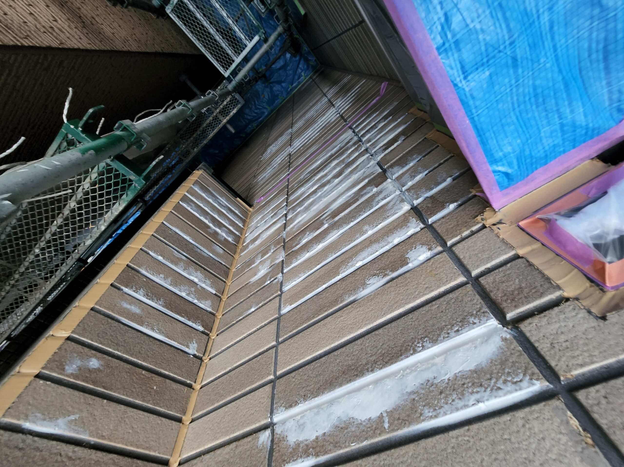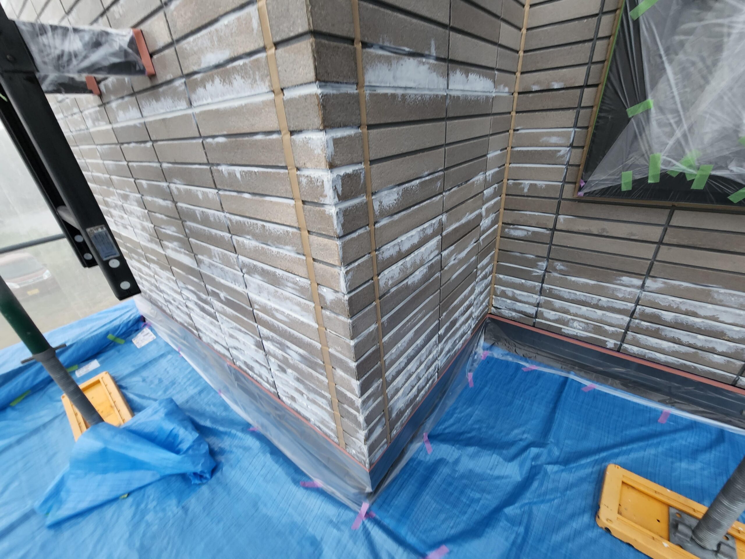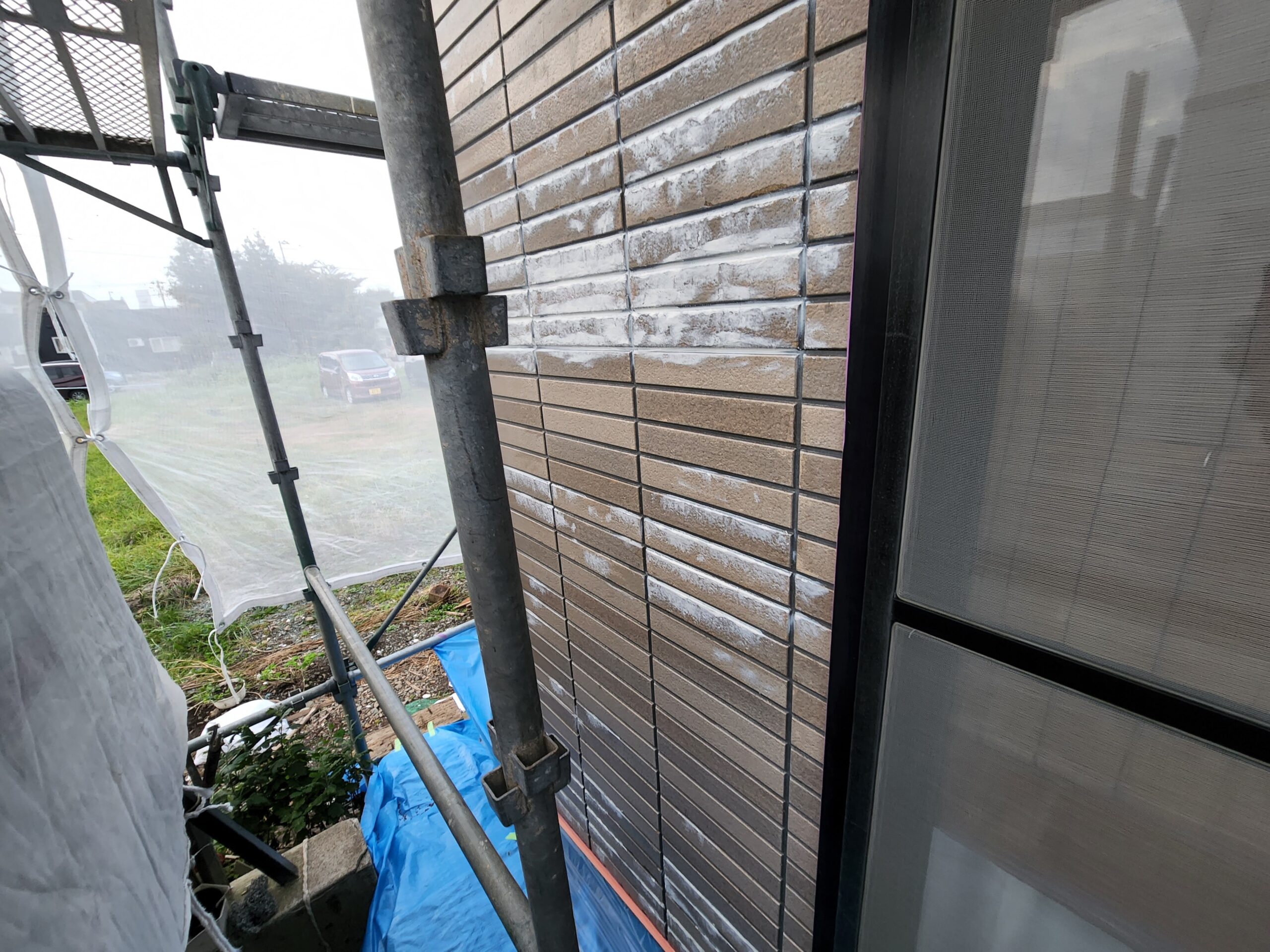 また下塗り材は通常1工程ですがこちらでは浸透型高密着のシーラー塗装をしてから、膜厚をとって軽微な外壁の劣化部分を補修してくれる役割をもつ微弾性フィラーを塗装と2工程を下塗りで施工しました。