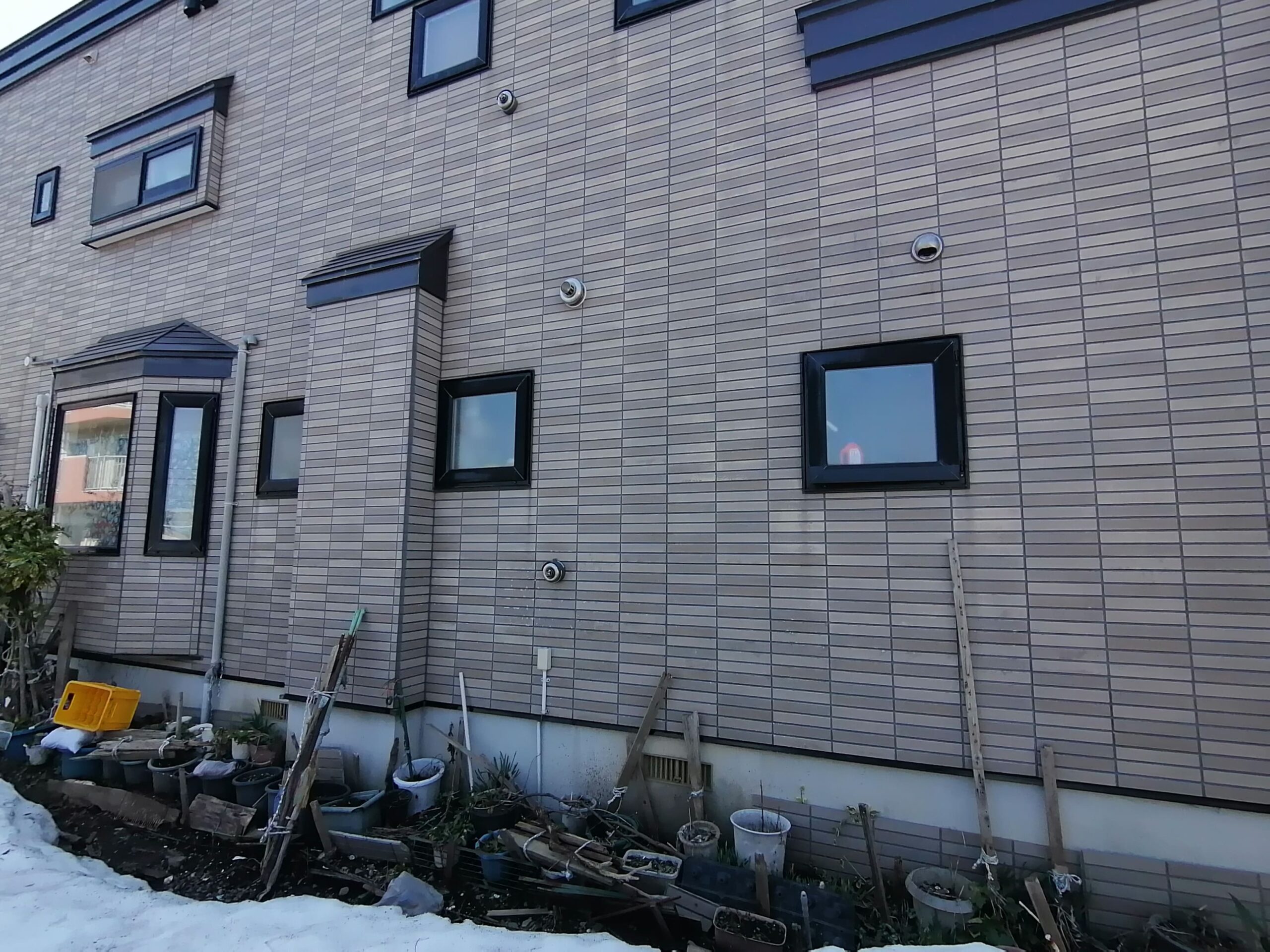 青森市内S様邸:ポイントは窯業系サイディング外壁材の剥がれによる劣化症状(凍害による爆裂)がかなり進行している状態で、若干塗装でのお手入れでは難しい状況でした。