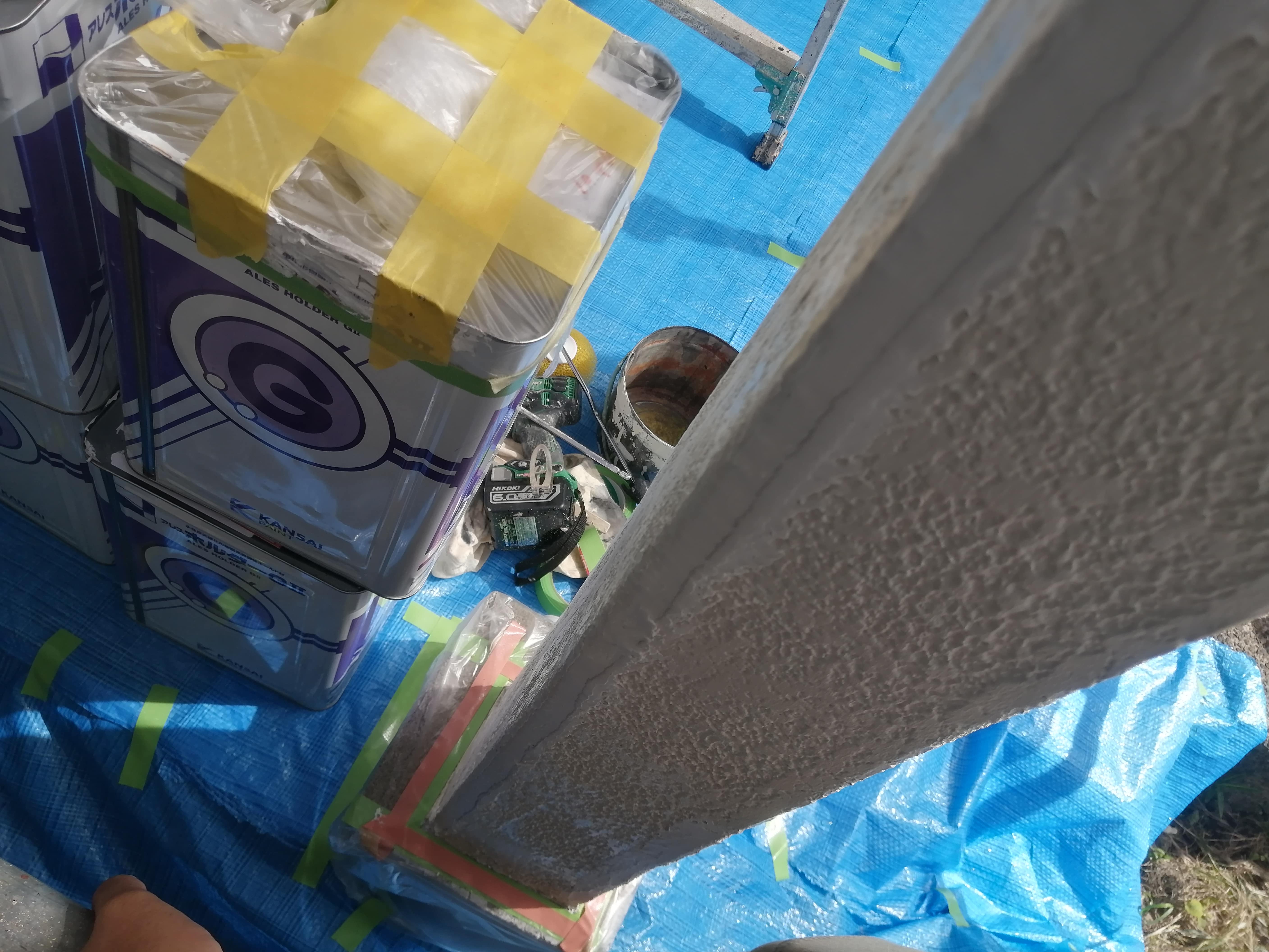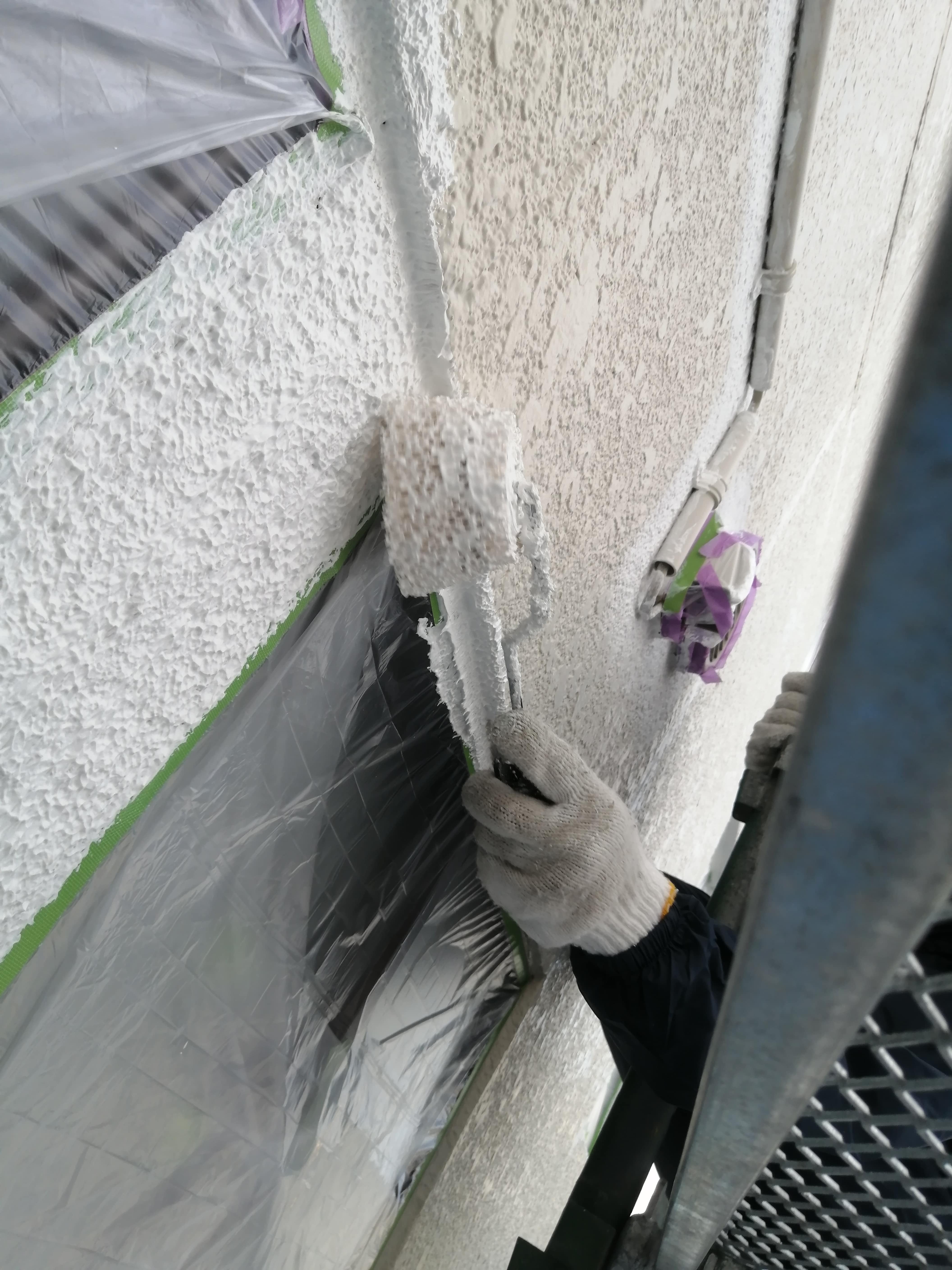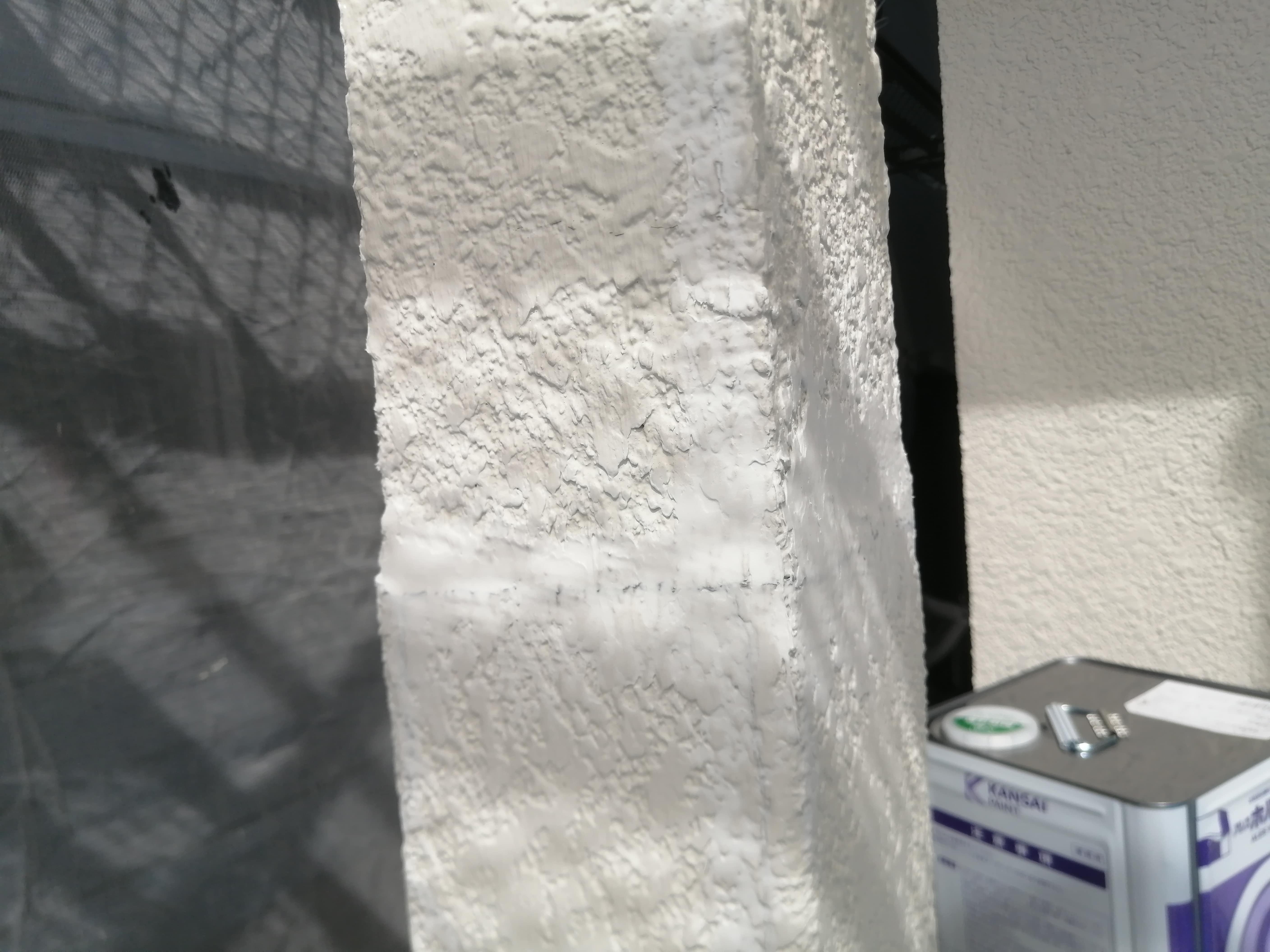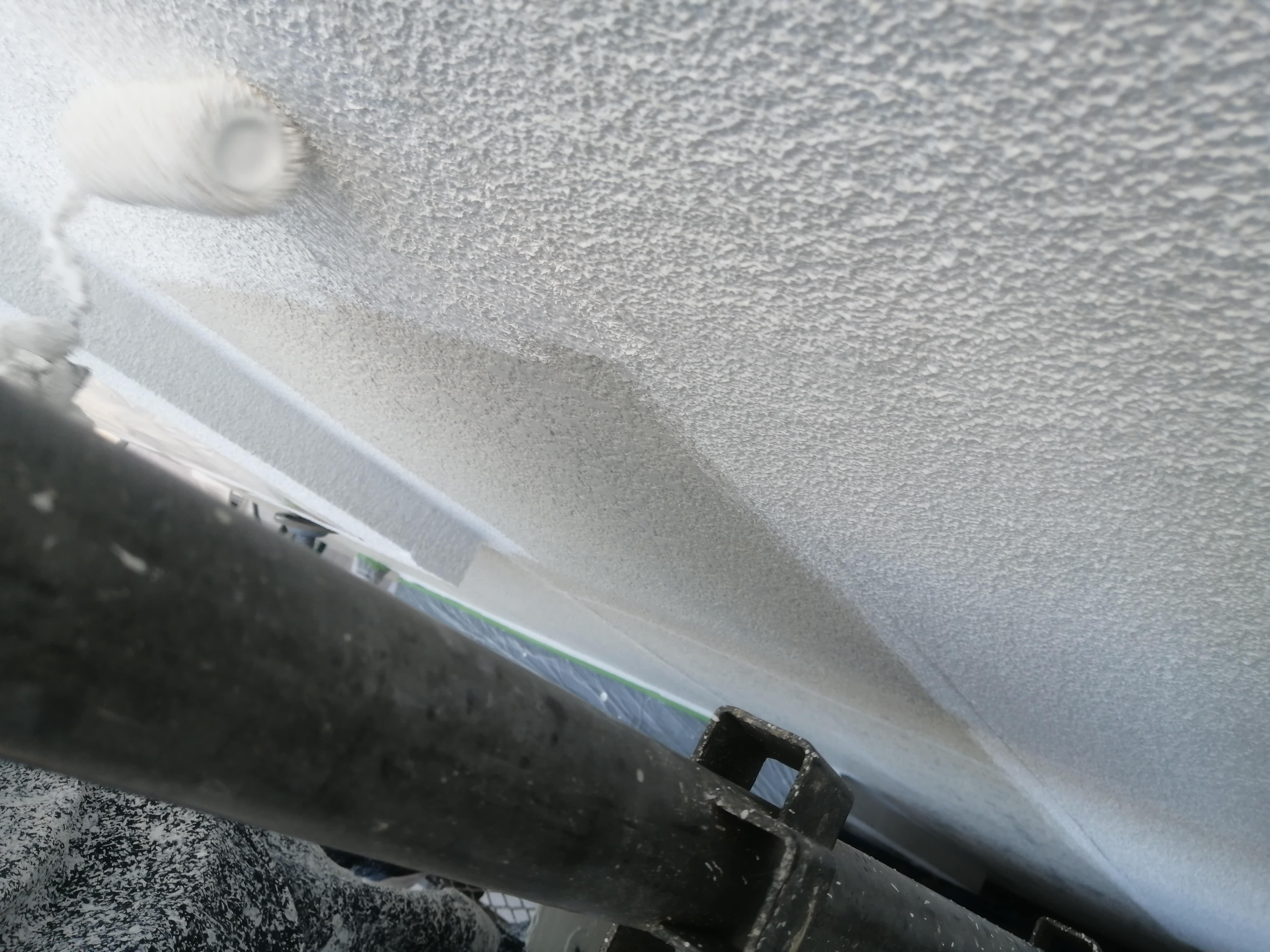 青森市内S2様邸:ポイントはモルタル外壁材に深めのクラック(ひび割れ)が多々あり、通常レベルの塗装工程だと早期のクラック(ひび割れ)がでてしまう為クラック(ひび割れ)が塗膜面への発生を抑える為と、既存のクラック(ひび割れ)の補修跡を目立たなくし塗装仕上がりを美しくする為にマスチックローラー工法を選定いたしました。。