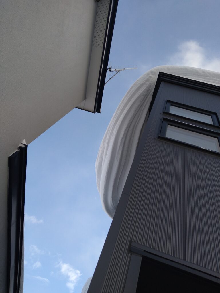 無落雪屋根などの北東側に発生しやすい雪庇(セッピ)は成長したまま放置すると、暖気・凍結・暖気・凍結と繰り返して、大きな氷の塊で手が付けられないほど成長してしまうことも珍しくありません。